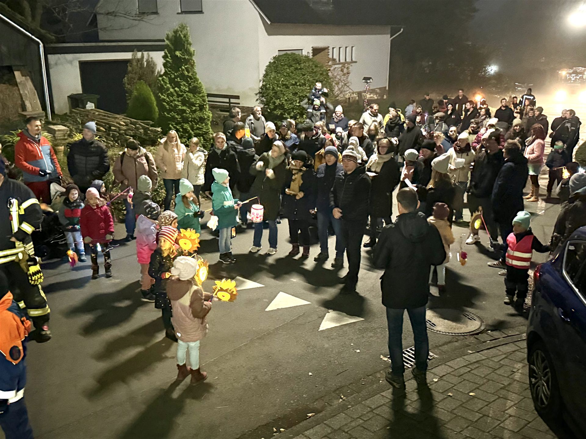 Unter dem Geleit des St. Martins zu Pferde führt der Zug durch die Mühlentalstraße zum Sportplatz, wo das St. Martins Feuer für eine schöne Stimmung sorgen wird. Es wäre schön, wenn die Anwohner der Mühlentalstraße auch wieder Lichter aufstellen würden.