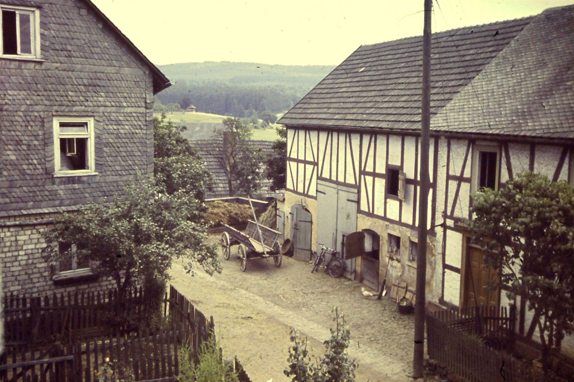 Das Bild und das Bild darunter zeigt ein typisches Westerwälder Bauernhaus (ehemaliger Besitz von Alfred Röhrig; heute Mühlentalstraße). Vor der Scheune ist der Erntewagen zu sehen.